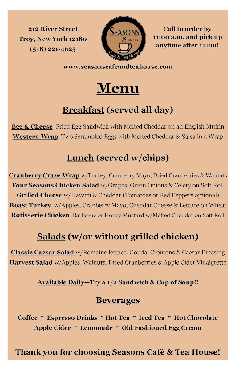 If you find yourself wandering the charming streets of Downtown Troy, make sure to carve out some time to visit Seasons Cafe & Tea House. Nestled at 212 River St, this delightful cafe isn't just a spot for a quick coffee; it's a cozy retreat that beckons with the promise of comfort and warmth. Open the door, and you’ll be welcomed by the rich aroma of freshly brewed coffee mingling with the sweet scent of baked pastries.